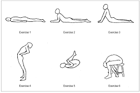 Mackensie exercises: There are five basic exercises in the Mackensie protocol. Standing still and bending to touch the toes, standing still and bending backwards, standing still and shifting your trunk from side to side, laying on your back and hugging the knees to the chest (exercise 5 below) and laying on your front and propping yourself up on your forearms. The aim with disc injuries is to find the exercises that hurt the least and more importantly reduce the radiating leg pain the most.