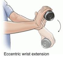 What can we do for you? As mentioned above manual therapy can help speed up recovery time by reducing the muscle tightness that has accrued over time causing the tendon to become inflamed. Soft tissue therapies like trigger point therapy and stripping massage to the tight forearm (& sometimes upper arm) muscles will reduce the load on the tendon. Reducing the fascial tension on the arm/neck will also help so IASTM and manipulation or mobilisation of the thoracic spine has been shown to be helpful. The most important exercises are eccentric stretches, these are described below but they are complicated and if done wrong can exacerbate the problem so performing them under supervision from a qualified therapist will likely lead to a better outcome. Kinesiotaping like rock tape can help to maintain the benefits of massage post treatment.
