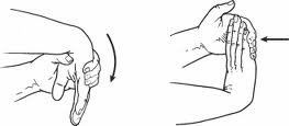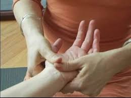 Carpal tunnel stretch – The picture below shows a partner performing the stretch but there’s no reason you can’t do it to yourself with one hand working on one side of the wrist at a time. Simply bend back your wrist and gently massage from the mid-line of the carpal tunnel area outwards towards the base of the thumb and little finger.